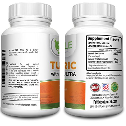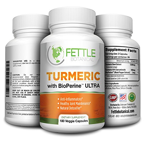 -. Feature : Our PUREST Tumeric Curcumin Supplement with Bioperine / Piperine / Black Pepper Extract - May Help RELIEVE JOINT PAIN - Fettle Botanical Turmeric Curcumin can act as a natural anti-inflammatory , which may help to relieve joint pain and stiff joints for better mobility and endurance * / ANTIOXIDANT supplement and DETOXIFIER - Pure Curcumin Powder May naturally remove toxins from your body and protects you against cell damage from free radicals , which can Promote Brain , Skin, Heart and Joint Health * / 100% NATURAL Turmeric Supplement Veggie Caps - Made in the USA - Made only with ingredients that are tested for PURITY and QUALITY - There are no artificial fillers, flavorings, or colorings. / 3 MONTH Supply 1300mg Daily Dose, All NATURAL 180 Veggie Capsules , Curcuma Longa / Can Reduce Beta-Amyloid plaque buildup, which is one of the main causes of poor memory *