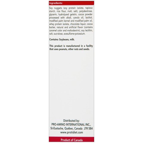 -. Binding : Health and Beauty -. Brand : Protidiet -. Feature : This delicious, crunchy cereal, loaded with chocolate flavor is a great way to get 15 grams of high quality protein. / only 150 calories / No trans fat / It is recommended to exercise while on a rich protein diet. Your results will be faster and you will feel even more energised. / Check it out at www.protidiet.com -. IsAdultProduct : 0 -. Label : Pro-Amino Protidiet -. Manufacturer : Pro-Amino Protidiet -. Model : BTL271 -. MPN : BTL271 -. PackageQuantity : 7 -. PartNumber : BTL271 -. ProductGroup : Health and Beauty -. ProductTypeName : HEALTH_PERSONAL_CARE -. Publisher : Pro-Amino Protidiet -. Size : box of seven bars -. Studio : Pro-Amino Protidiet -. Title : Protidiet Crunchy Cereal Chocolate Flavor Protein Bars (box of 7 bars)