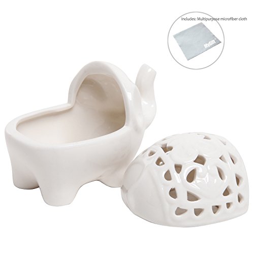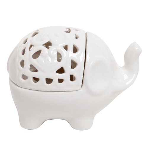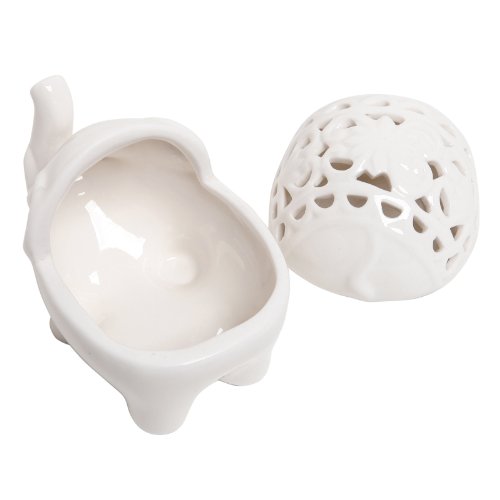Decorative White Elephant Openwork Design Ceramic Tea Light Candleholder - MyGift