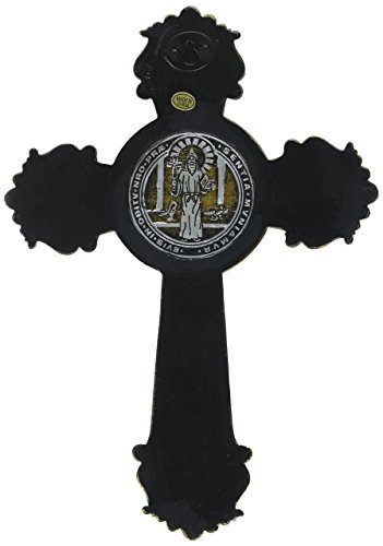 Saint Benedict Wall Cross Crucifix with Antique Silver and Gold Finish, 10 1/4 Inch
