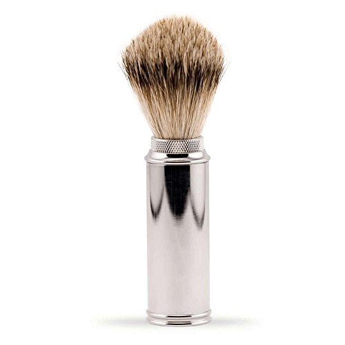 OneBlade 22mm Super Badger Hair Travel Shaving Brush, Chrome Plated Brass Case