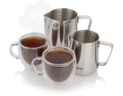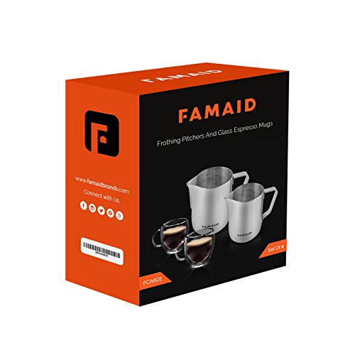 The Secret To The Perfect Latte At Home Are you a true coffee lover that wants each cup to be an amazing experience? Do you want to impress your guests and serve them professional quality coffee? Do you have an espresso machine and would love to be able to make cappuccinos too? Do you own a coffee shop and need some new equipment? Then you've found what you were looking for! The Famaid frothing pitchers and espresso cups set is exactly what you need! Professional Results Why waste money on store bought lattes when you can have the same - if not better - delicious coffee from the comfort of your own home? The Famaid frothing pitchers will give you the best texture and flavor so you can make the finest foam for your cappuccino. In the set you will find a 20oz and a 12oz pitcher so you can serve your guests or make a cup just for yourself. With their ergonomic design they are very easy and convenient to use so that even beginners will soon be able to make latte art! The pitchers are made with premium quality stainless steel so you can rest assured that they will never break or rust. Italian Finesse We want you to have the finest and most original coffee experience and this is why we also offer you two beautifully made glass espresso cups. The mugs are incredibly stylish and elegant and they are made to perfection so you can have the best results every time. The double walled glass also works as insulation so it can keep your beverage hot while staying cool on the exterior for maximum convenience. So what are you waiting for? Get Yours Now Before We Run Out Of Stock! Just Click Add To Cart 0 |
