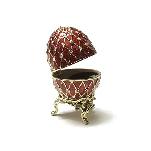 Ruby Red Enameled Faberge Egg Box is delivered with a removeable Ring Insert and an engraved stand. 3.25 inches tall.