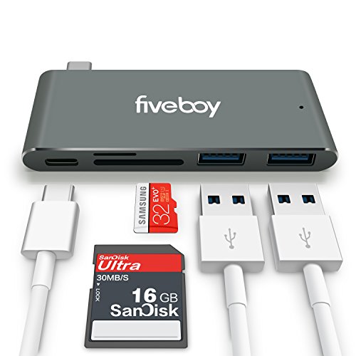 -. Title : USB Type-C Adapter, Fiveboy USB C Hub with Type C, 2 USB 3.0 Ports and SD/TF Card Reader for MacBook Pro, Google Chromebook and More Type C Devices-Gray