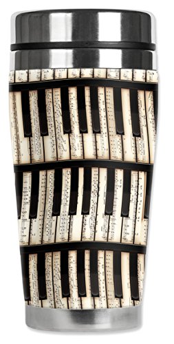 Mugzie 6510-MAX "Piano Keys" Stainless Steel Travel Mug with Insulated Wetsuit Cover, 20 oz, Black