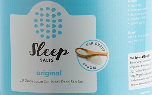- MADE FROM THE BEST – Made in the USA from only the purest, PHARMACEUTICAL GRADE Epsom salt and ISRAELI DEAD SEA salt to provide an enriched, therapeutic experience and naturally improve your sleep. Israeli Dead Sea salt provides a multitude of beneficial minerals such as Potassium, Calcium, Bromide, Sulfur and most importantly MAGNESIUM, which has been linked to improve your sleep cycle. Sleep Salts are highly beneficial with NO ADDED DYES or chemicals.