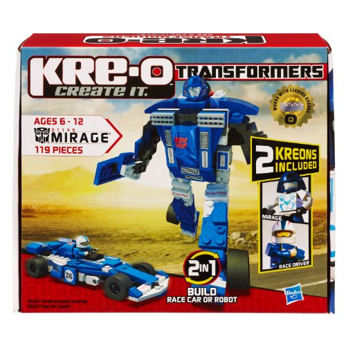 -. Binding : Toy -. Brand : KRE-O -. EAN : 0783719821790 -. ESRBAgeRating : Early Childhood -. Feature : Build the Autobot team's top hand-to-hand fighter, Mirage, in vehicle or robot mode with this 2-in-1 set of 119 KRE-O construction pieces / Includes 2 Kreon figures: Mirage and Race Driver / 2-in-1 KRE-O construction set lets you build Mirage as a robot figure or as a race car / In vehicle mode, one of your Kreon figures can ride inside the race car / Ages 6 to 12 -. Genre : strategy -. IsAdultProduct : 0 -. ItemPartNumber : HSB31145 -. Label : Kre-o -. Manufacturer : Kre-o -. Model : 31145 -. MPN : 31145 -. PackageQuantity : 1 -. PartNumber : 31145 -. ProductGroup : Toy -. ProductTypeName : TOYS_AND_GAMES -. Publisher : Kre-o -. ReleaseDate : 2011-07-01 -. Studio : Kre-o -. Title : KRE-O Transformers Mirage Construction Set (31145) -. UPC : 653569653561