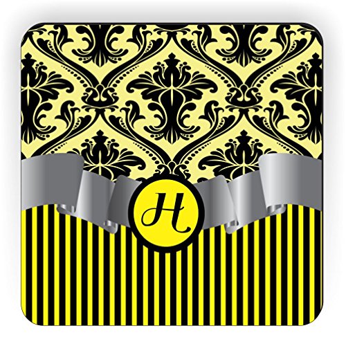 Rikki Knight Letter "H" Initial Yellow Damask and Stripes Monogrammed Design Square Fridge Magnet