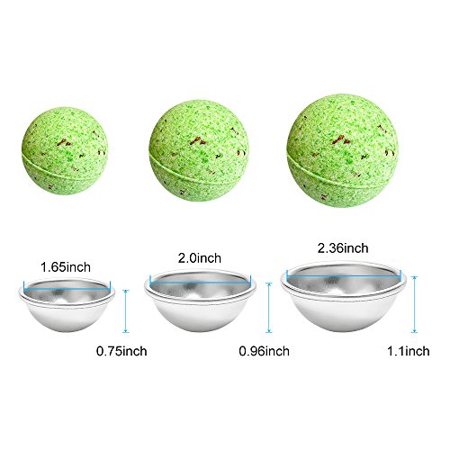 - PRODUCT DEMENSIONS- Come with 3 sizes, 6 pieces bath bombs molds for making different size colorful bath bombs. Large inner diameter is 2.37 inch(6cm) - 2 pieces, Medium inner diameter is 2.0 inch(5.2cm) - 2 pieces, Small inner diameter is 1.65inch(4.2cm) - 2 pieces