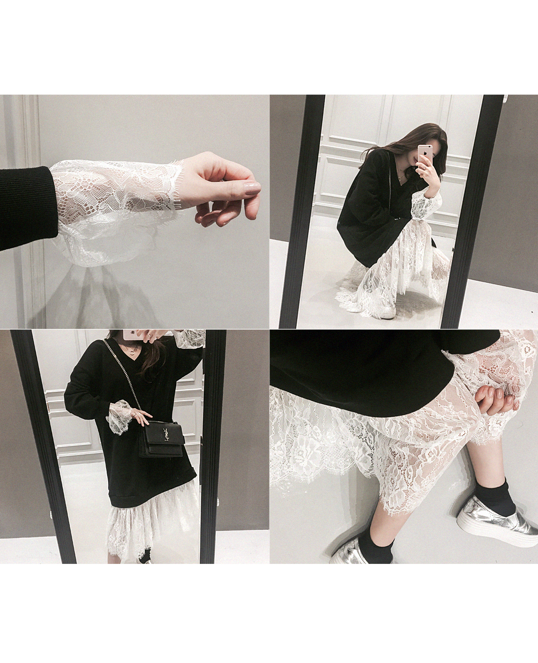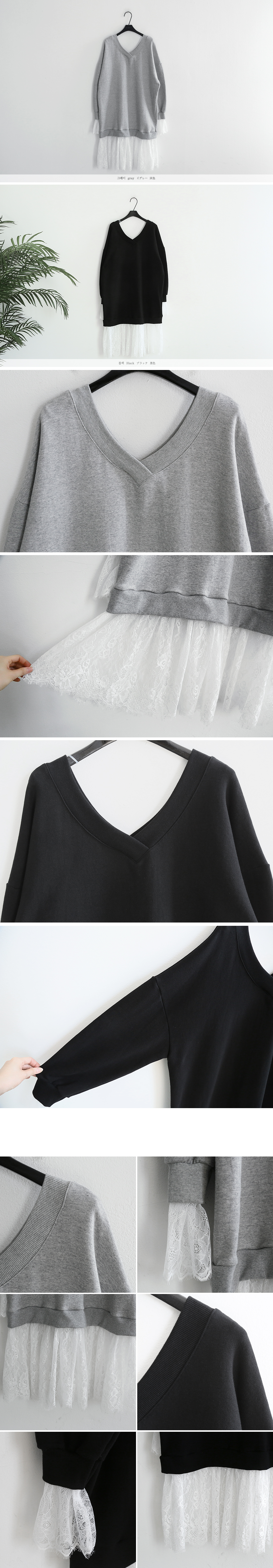 맨투맨 모티브에 소매와 밑단에 레이스디테일로 포인트 준 제품인데요~