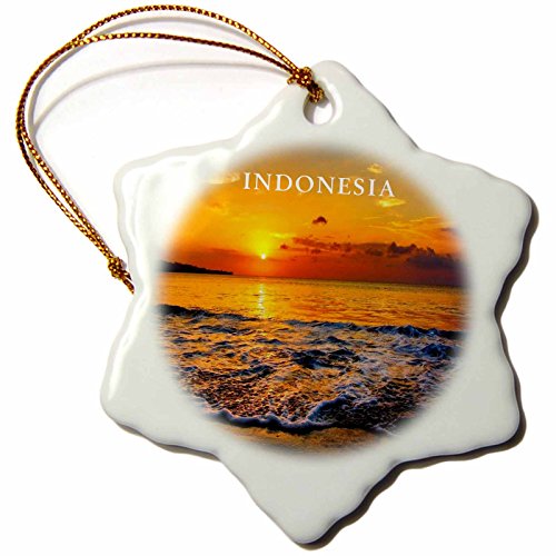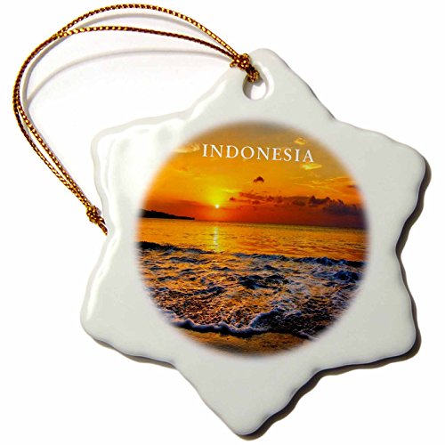 3dRose orn_80750_1 Sunset on Bali Indonesia Snowflake Porcelain Ornament, 3-Inch