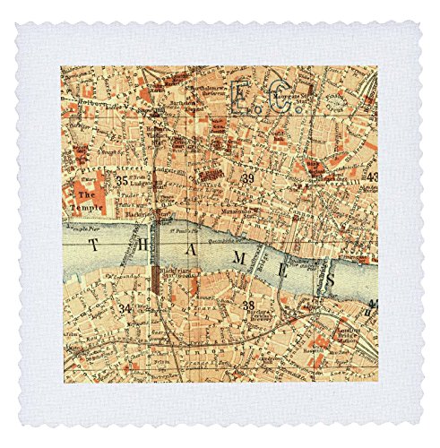 3dRose qs_112939_6 Vintage Map of London UK Section with Thames River-Retro Cream Brown Orange-Geography Travel-Quilt Square, 16 by 16-Inch