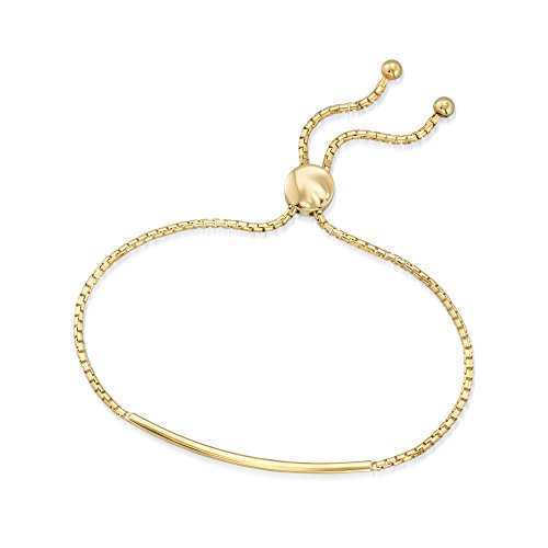 Ross-Simons is the authority on affordable luxury. This on-trend bolo bracelet showcases stylish simplicity. The bracelet stations a curved bar on a 1.5mm box chain. By sliding the disc at the back, it adjusts to fit most wrists. Made in Italy. 18kt yellow gold over sterling silver bracelet. Each Ross-Simons item arrives in a fine jewelry presentation box. Shop Ross-Simons jewelry risk-free as all items include a 30-day, 100% money-back guarantee.Feature