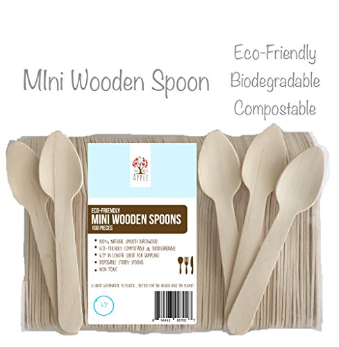 Better for the environment than plastic, Biodegradable Composted after use. Eco friendly Wooden Disposable Spoons: 100 wooden Taster Spoons Use for: Perfect for tasting gelato, ice cream, yogurt, hummus, butters, jams etc and just about anything Measure: 4.5" (110mm) in Length Material: Made of 100% natural solid birch wood Strong and Sturdy Non Toxic: no plastics or harmful chemicals Utelise for: - Perfect spoon for sampling