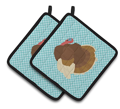 Caroline's Treasures BB8164PTHD French Turkey Dindon Blue Check Decorated Pot Holder, 7.5" x 7.5", Multicolor