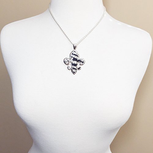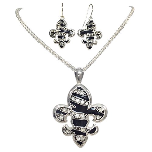 Fleur De Lis Silver Tone Rhinestone Designer Look Necklace and Earrings Set (Zebra Stripe Print)