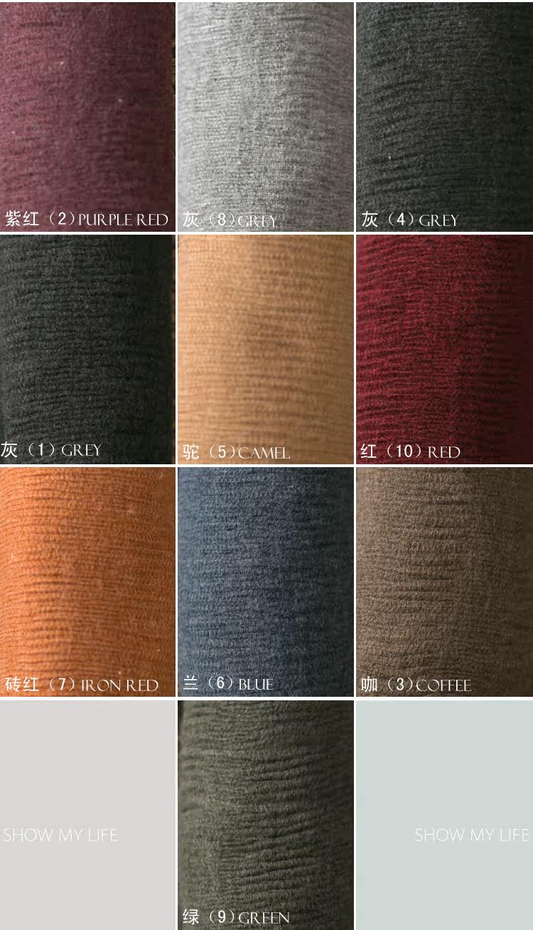 红(10),紫红(2),灰(4),灰(1),咖(3),驼(5),绿(9),灰(8),兰(6),砖红(7)