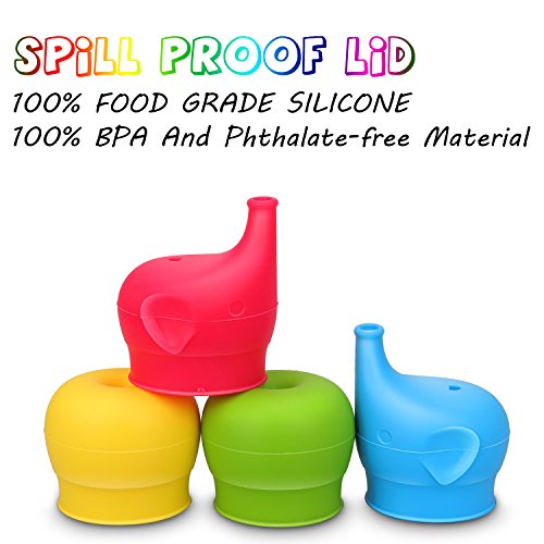 -. Title : Silicone Sippy Cup Lids, Mami&Babi Make Any Cup Spill-Proof Training Cup or Bottle, BPA Free, Leak Proof for Babies Toddlers and Kids (2 Pack Straw lids + 2 Pack Elephant Spout Lids)