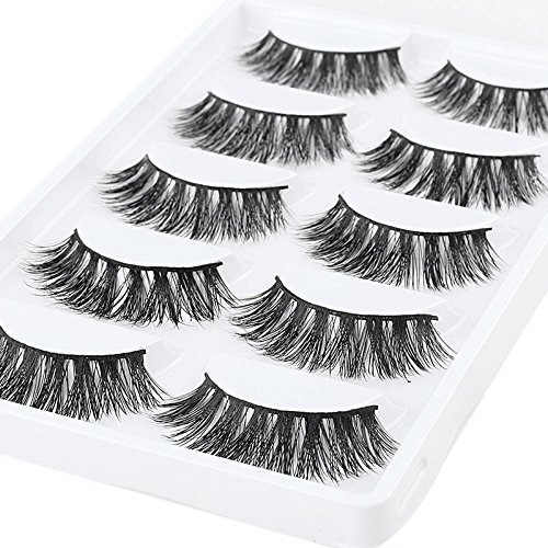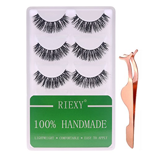 Pack of 5, RIEXY 3D Mink 100% Handmade False Eyelashes with Rose Gold Stainless Steel Applicator