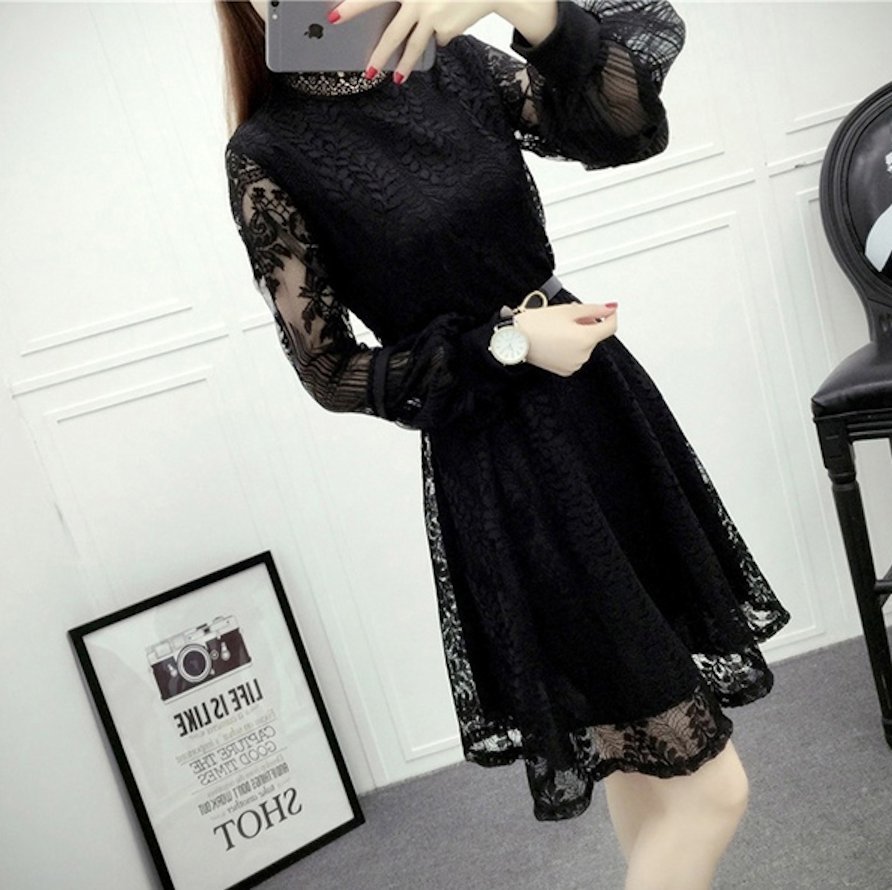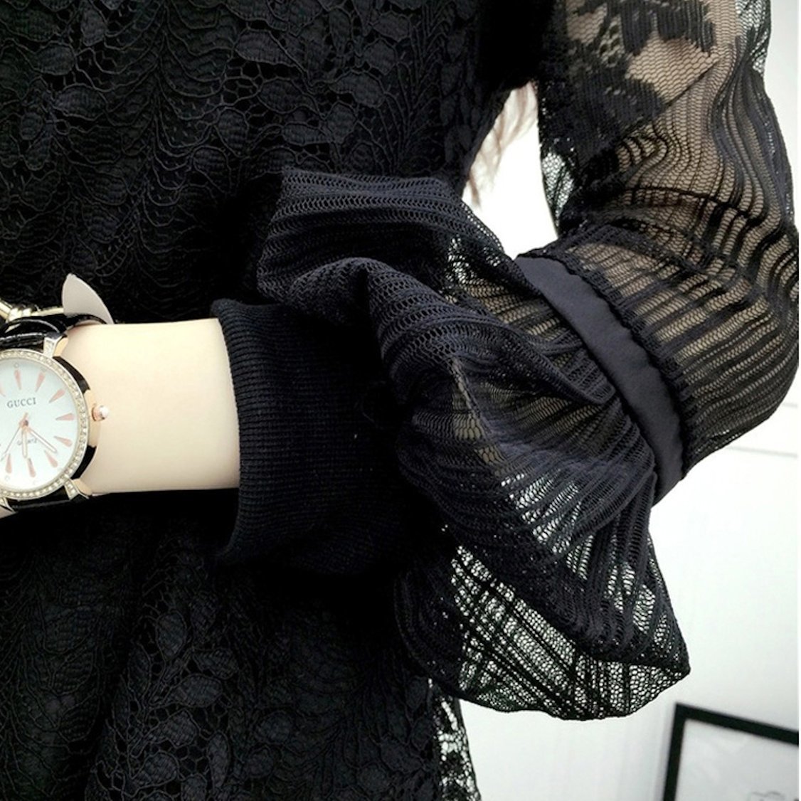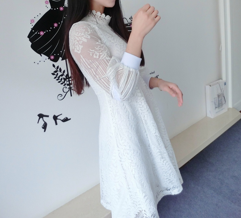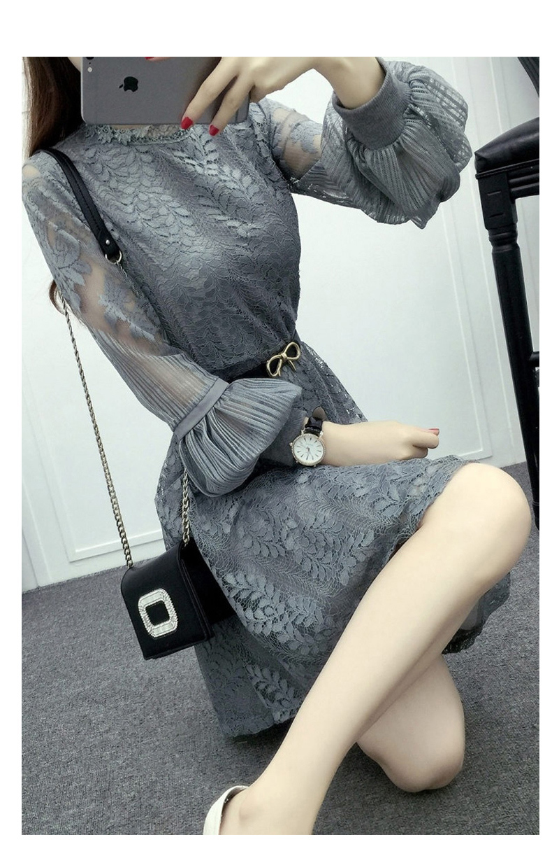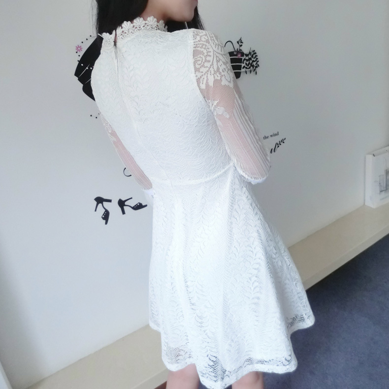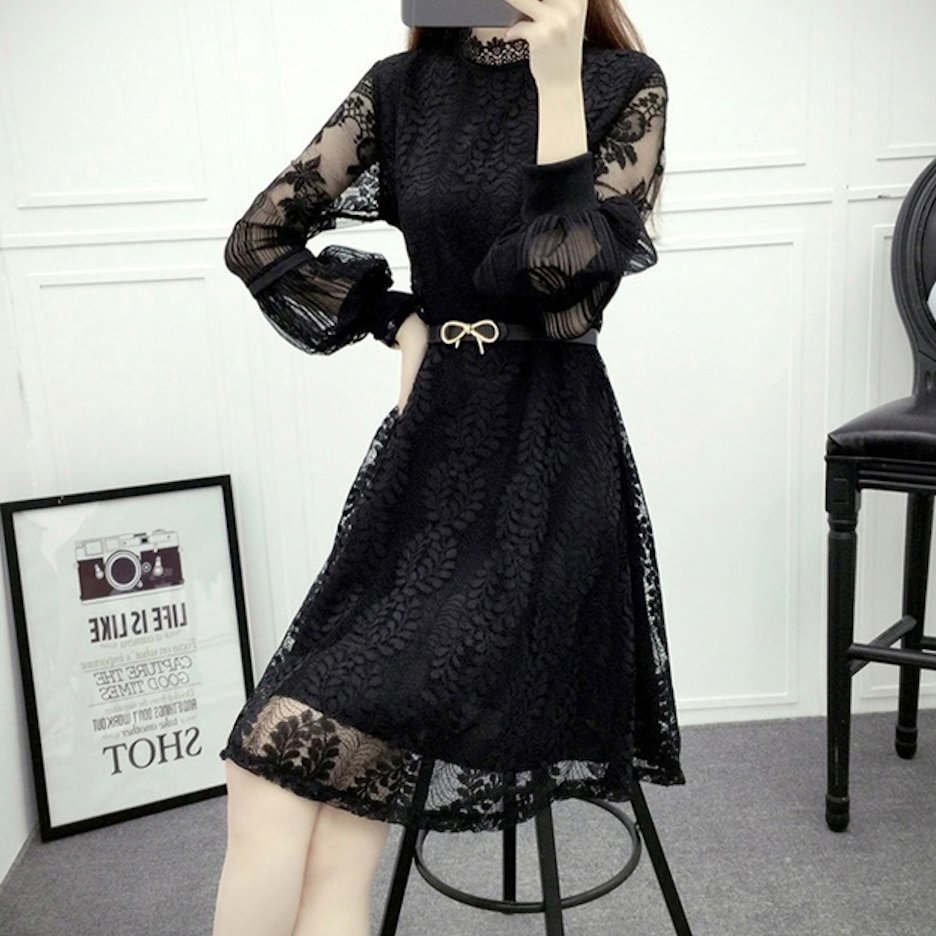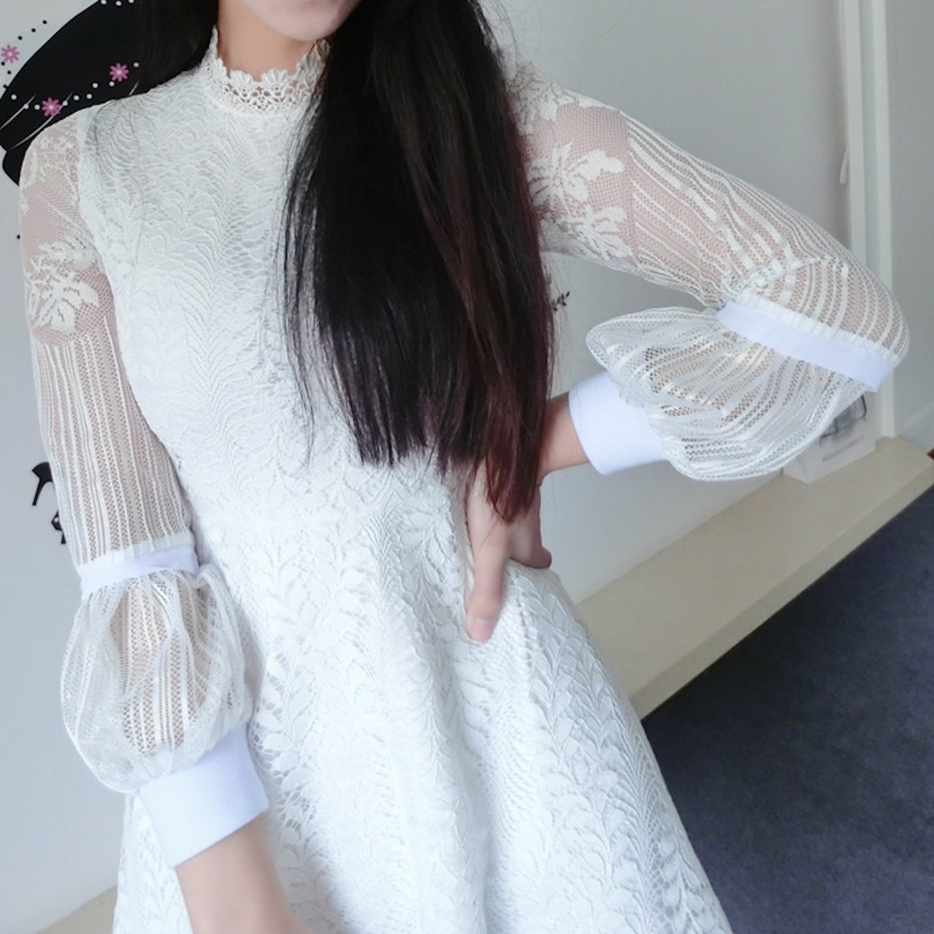 レース ワンピース 30代 レトロ パフスリーブ ハイネック リボンベルト フェミニン 結婚式 二次会 パーティー デート ボリューム袖 20代 ミニ丈