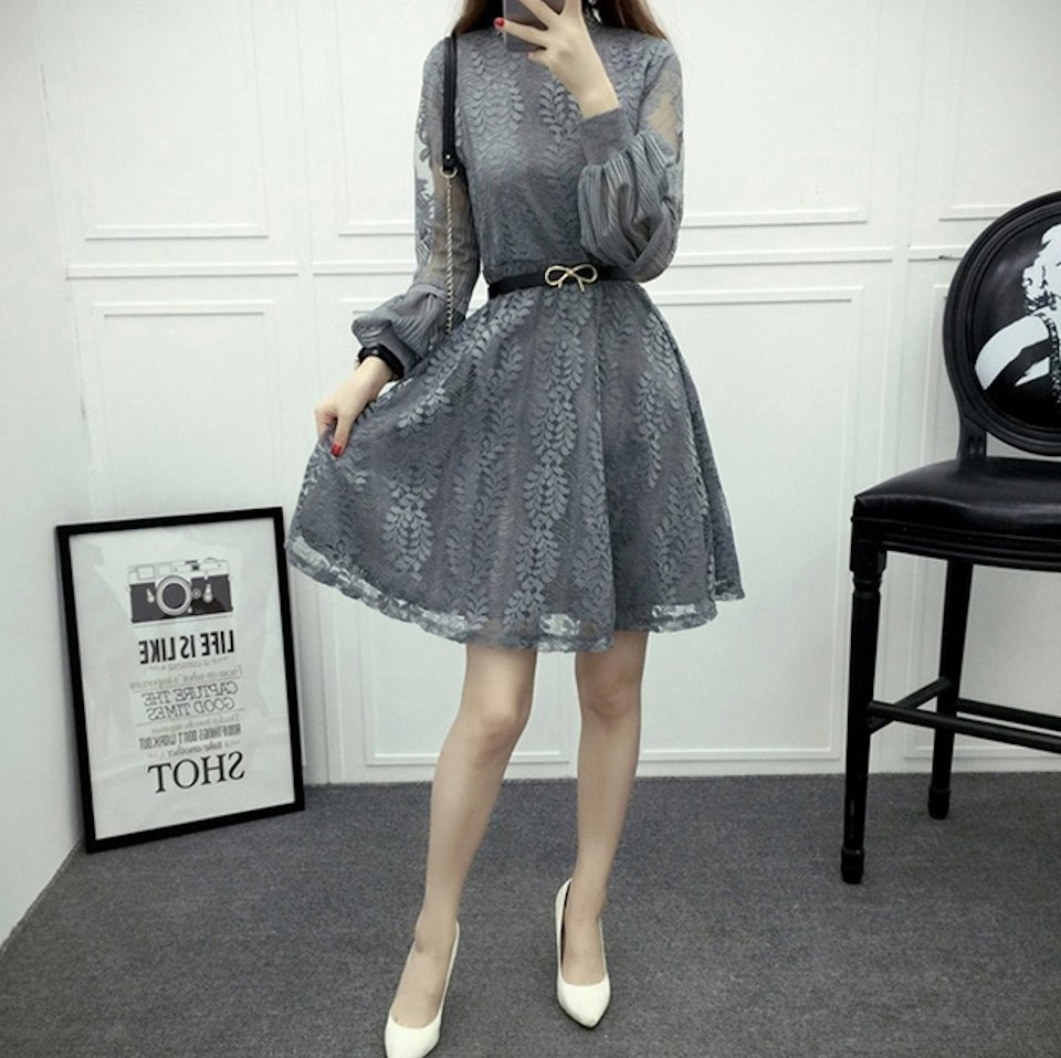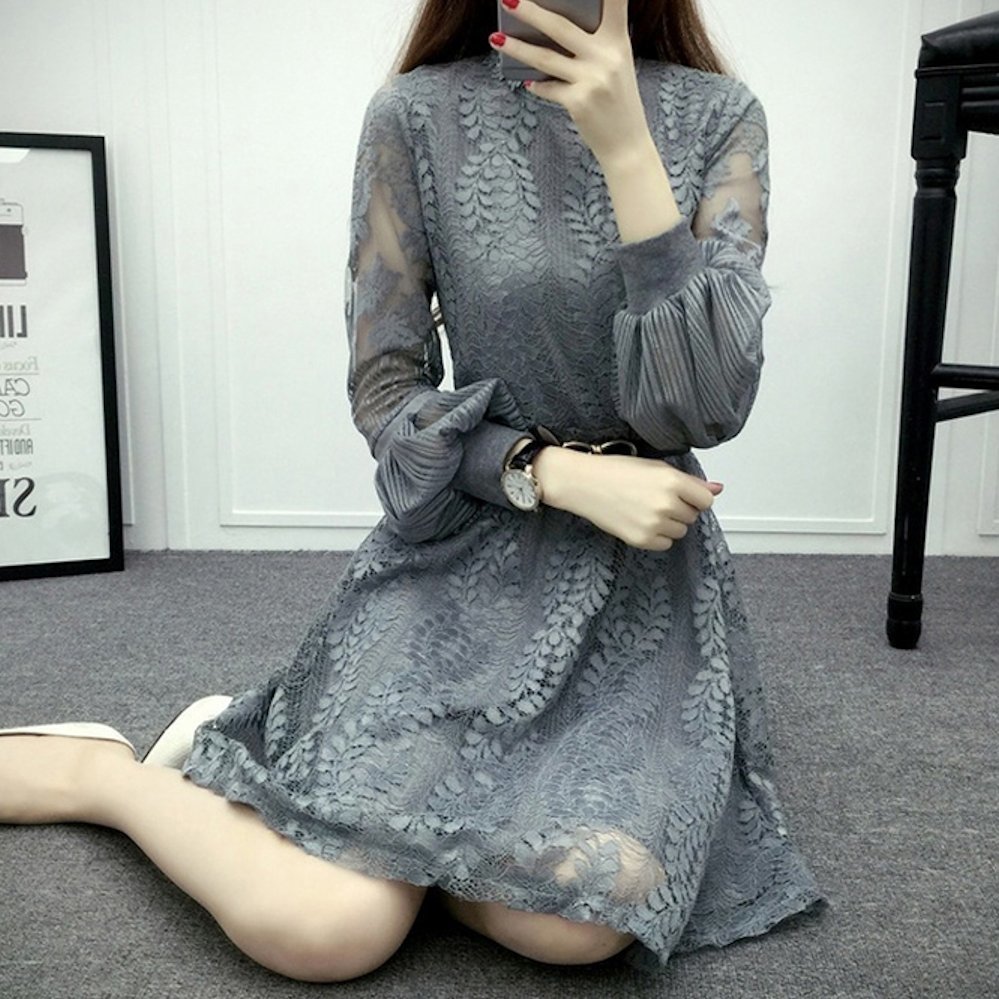 透け感レースのパフスリーブ切替デザインが新鮮なワンピースドレス。