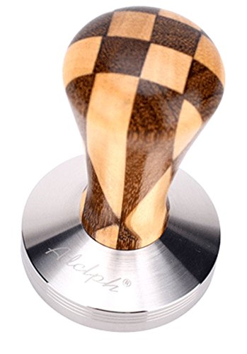 ADOLPH ELEGANCE WOODEN COFFEE TAMPER - ESPRESSO TAMPER 58MM STAINLESS STEEL BASE WITH SOLID WOODEN HANDLE - COFFEE SHOP SUPPLIES - BARISTA TOOLS AND EQUIPMENT
