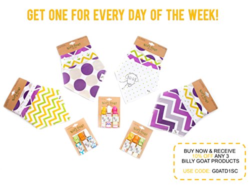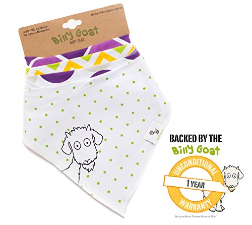 -. Feature : NO MORE RASHES OR SKIN IRRITATION - Ultra absorbent, durable, long-lasting bandana bibs made with 100% Organic cotton (front) & polyester fleece (back) protect skin from rash & irritation. / SAVE TIME & MONEY ON LAUNDRY - Buy a few sets of our bibs so you won't have to constantly wash dirty clothes. Our bibs are super durable so you can throw them in the wash. / AMAZING QUALITY & EASY TO USE - Two adjustable snaps make these hard to pull off and a snap for you to put on! / THE BILLY GOAT UNCONDITIONAL WARRANTY - Simple, if you aren't thrilled with our product, you have a 1-year money back guarantee! What are you waiting for? Buy today! / IT'S THE SILLY BILLY - We love babies. All of them, newborns, infants and toddlers. Yes they are incessantly drool, throw-up, burp, and cry. These cute little boys and girls love to chew on teething necklaces, soothies, toys, cell phones, scarfs burp cloths, . wubbanubs, wash cloths, and anything they can get their hands on. They stay fresh, fashionable, stylish and trendy in organic muslin & bamboo cotton. Buy the best unisex 4 Set Baby Bandana Bibs Drool Bib Baby Bandanas for Boys & Girls.