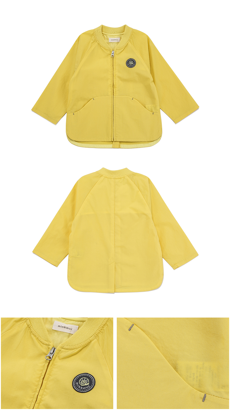 화사한 옐로우 칼라감의 홑겹점퍼입니다.