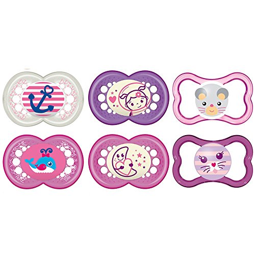 -. Title : MAM Day & Night LATEX Schnuller // 6-16 Mo. // Girl Mix // 6er Set // inkl. 3 Sterilisiertrasportboxen