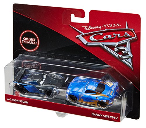 -. Binding : Toy -. Brand : Disney -. EAN : 0887961502718 -. Feature : Storytelling 2-pack of favorite characters fromDisney/Pixar Cars 3 / Inspired by key movie moments between two dynamic characters / With iconic paint, logos and special new designs, to authentically recreate the action and laughs! / Great gift for Disney/Pixar fans / Collect them all -. IsAdultProduct : 0 -. Label : Mattel -. Manufacturer : Mattel -. Model : FGF03 -. MPN : FGF03 -. NumberOfItems : 1 -. PackageQuantity : 1 -. PartNumber : FGF03 -. ProductGroup : Toy -. ProductTypeName : TOYS_AND_GAMES -. Publisher : Mattel -. ReleaseDate : 2017-05-05 -. Studio : Mattel -. Title : Disney / Pixar Cars 3, Jackson Storm and Danny Swervez, 1:55 Die-Cast Vehicle 2-Pack -. UPC : 887961502718 -. Warranty : 1 year warranty against manufacturer defects
