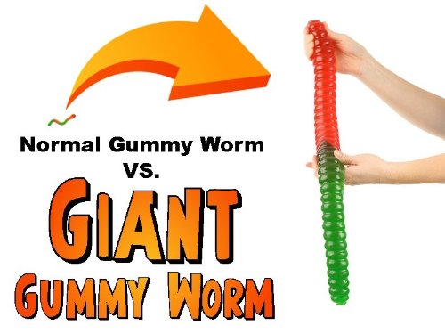 -. Feature : Delicious sour apple and cherry flavor / Over 3 pounds of gummy worm goodness! / Fun to eat (and share)! / Hilarious gag gift / Two feet long!