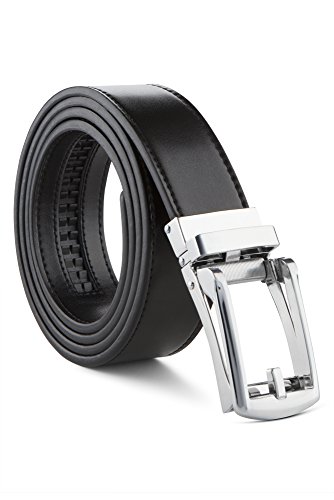 -. Binding : Apparel -. Brand : Mark Fred -. Color : Black Strap With Silver Buckle -. Department : mens -. EAN : 0619175523223 -. Feature : MADE WITH PREMIUM LEATHER, so they are meant to last and will withhold any work, play and an evening out on the town. / THIS BELT IS MADE TO Cut Down To Custom Size! / IMPRESS YOUR FAMILY AND FRIENDS, show up with style! -. IsAdultProduct : 0 -. ProductGroup : Apparel -. ProductTypeName : ACCESSORY -. Size : One Size Fits All (28-51 in Waist) -. Title : Mens Belt Genuine Leather Ratchet Dress Belt With Automatic Leather Buckle (One Size Fits All (38-56 in Waist), Black strap with silver buckle) -. UPC : 619175523223
