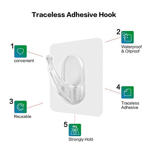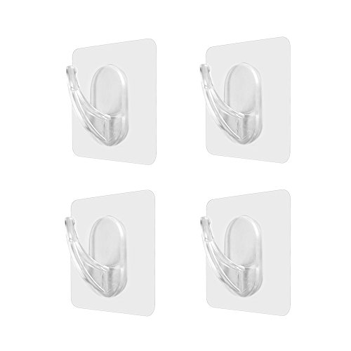Oneach 11 lb/5kg(Max) Traceless Adhesive Hooks Transparent Reusable Heavy Duty Wall Towel Hook No Scratch ,Waterproof and Oilproof, for Bathroom Kitchen Ceiling Hanger(4 PCS)