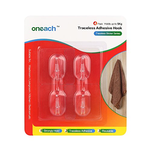 WIDE APPLICATION - Oneach Traceless hooks can be widely used to hang towels, washcloth, robes, clothes, pictures etc.Great for hanging shower and bath accessories in a bathroom or kitchen utensils and tools on a tile backsplash. Works on a variety of surfaces ,such as smooth wooden board, glass, ceramic tiles, marble and metal surface