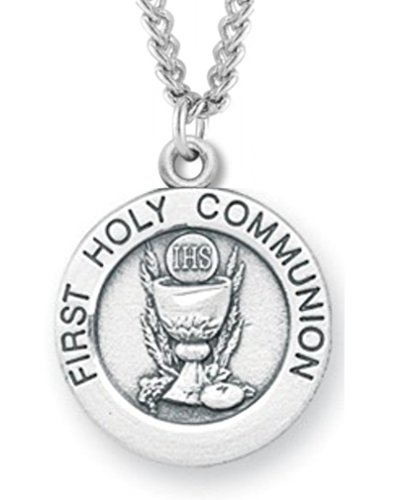 -. Binding : Jewelry -. Brand : Heartland Store -. Department : mens -. Feature : SIZING: 13/16 inch x 5/8 inch / QUALITY: This top quality pendant is made from Genuine .925 Sterling Silver / NECKLACE INCLUDED: Tarnish Resistant 18 inch rhodium plated solid brass chain / EXPERIENCE: Finest Quality Jewelry. American Craftsmen. Made in USA -. Label : Heartland Store -. Manufacturer : Heartland Store -. ProductGroup : Jewelry -. ProductTypeName : FASHIONNECKLACEBRACELETANKLET -. Publisher : Heartland Store -. Studio : Heartland Store -. Title : Heartland Youth Sterling Silver Smaller First Communion Medal + Best Quality USA Made + Chain Choice