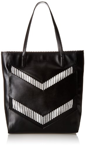 -. Feature : Classic tote silhouette with chevron striped mesh insets and pinking edge trim at top