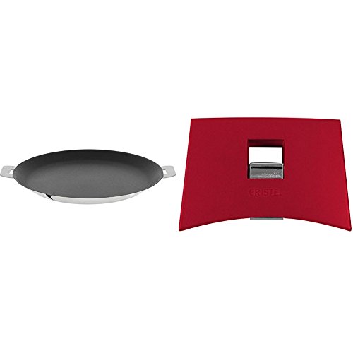 -. Title : Cristel CR30QE Non-Stick Crepe Pan, Silver, 12" with Cristel Mutine Spplmaf Set of Handles, Raspberry