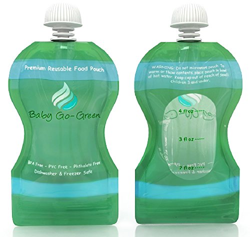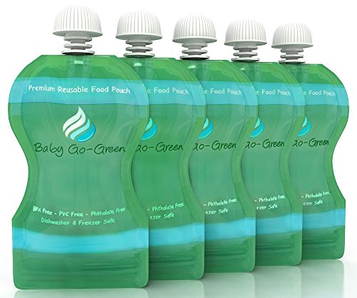 -. Binding : Baby Product -. Brand : Baby Go-Green -. Color : Green -. EAN : 0755563215339 -. Feature : ENVIRONMENTALLY FRIENDLY: Reduce waste by eliminating the need to buy prefilled pouches - Our products are free of toxins such as BPA, lead, phthalates and PVC / EASY TO USE: The clear window on the back allows you to know exactly what's in the pouch and how much is left / EASY TO FILL & CLEAN: The large opening makes the pouch easy to fill and clean with a simple rinse, brush or in the dishwasher / EASY TO SQUEEZE: The size and contoured shape of our pouches makes it great for use by children's little hands / 100% MONEY BACK GUARANTEE: You'll love our pouches or we'll gladly refund your money back -. Label : Prime-Products -. Manufacturer : Prime-Products -. Model : BGG-2015 -. PackageQuantity : 5 -. ProductGroup : Baby Product -. ProductTypeName : BABY_PRODUCT -. Publisher : Prime-Products -. Size : Medium, 5 fl oz Pouches -. Studio : Prime-Products -. Title : Premium Reusable Food Pouch (5 Pack) - Extra Wide Opening - No Leaks with the Double Zipper Design - Perfect for Homemade or Organic Baby Foods & Juices - 5 fl oz Capacity - Eco-Friendly Pouches -. UPC : 755563215339