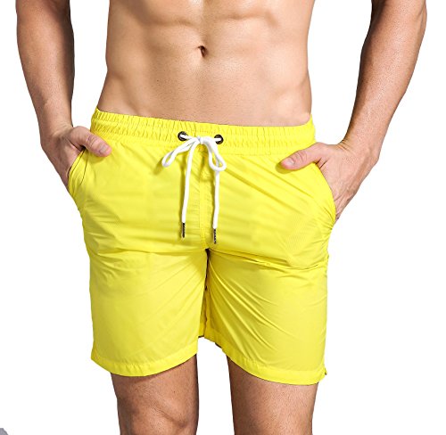 -. Feature : Men's Solid Leisure Swim Shorts that keep you looking good in comfort. Made with quick-drying and light weight fabric / Elastic waistband with drawcord ties,Mesh lining,Side pockets / Solid color swim shorts, 7 colors to choose, breathable and comfortable fit / Suitable for any circumstance, when walking, running, in the beach or at home, etc beach pants men shorts / Asian size is smaller than US size, Please choose the right size based on your natural waist