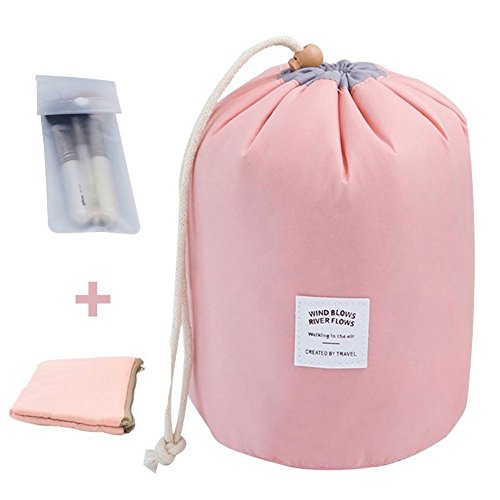 - INCLUDINGS: A large bucket style cosmetic bag +one small zipper jewellery pocket+one mini transparent PVC toiletry pouch. Help Organize your stuff in tidy and clean condition, perfect anti-lost design.