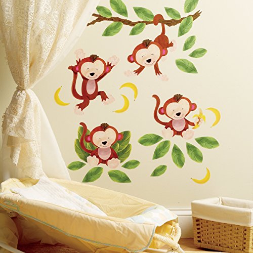 Wallies Wall Decals, Baby Monkeys Wall Stickers, Set of 4