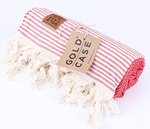 Gold Case - 100% Cotton Peshtemal / Turkish Bath-Beach-Sauna-Hamam-Spa-Yoga-Picnic Towel - BIG SALE!! - Multifunctional Towel - 39"x70" (100x180cm), Red