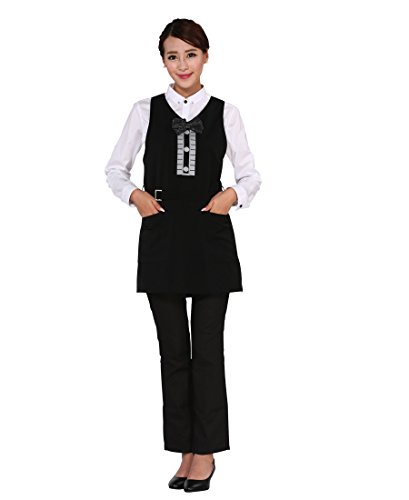 SMARTHAIR Polyester Professional Work Chef Apron with Pocket, Black,A220011