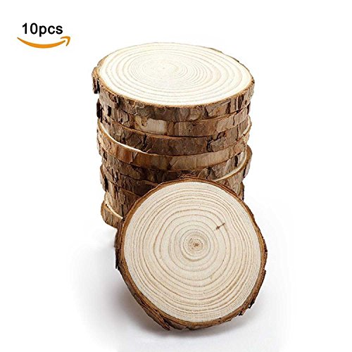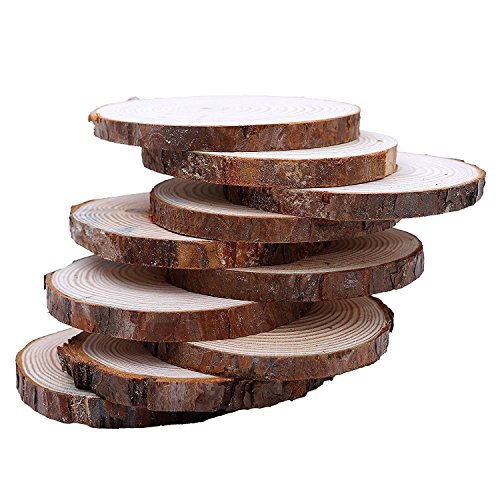 10pcs 3.9"-4.7" Unfinished Predrilled Wood Slices Round Circles with Tree Bark Wood Slices for Centerpieces and DIY Craft Rustic Ornaments