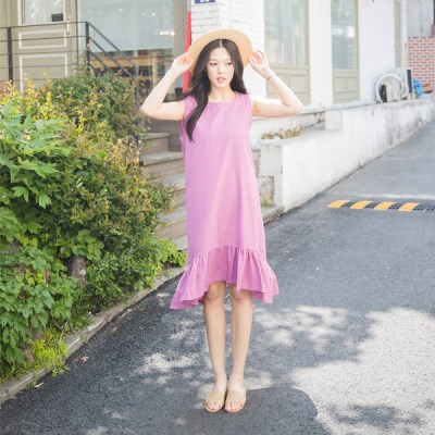 밑단 프릴로 샤랄라~ 고슬고슬한 느낌의 민소매 린넨 원피스!