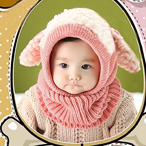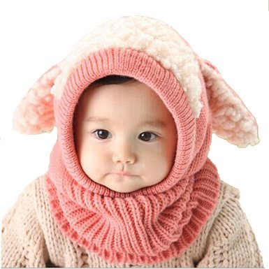 BABY GIRLS BOYS WINTER HAT SCARF WOOLEN EARFLAP HOOD SCARVES SKULL CAPS (PINK)