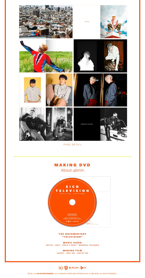 DISC2 (DVD) 01. THE DOCUMENTARY "TELEVISION” 02. MUSIC VIDEO (ARTIST - ANTI - SHE’S A BABY - BERMUDA TRIANGLE) 03. MAKING FILM (JACKET - ANTI MV - ARTIST MV)