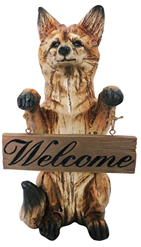 Alpine AJY160 Standing Fox with "Welcome" Sign Statuary, 16"