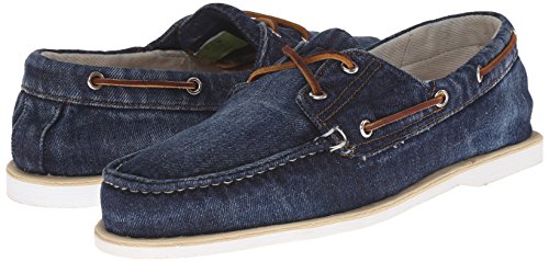 Studio : Timberland Casual Footwear Mens Publisher : Timberland Casual Footwear Mens Binding : Shoes Product Description The Timberland 6750B Icon Classic Denim Boat Shoe offers a classic boat shoe look with a casual denim style. Made of whiskered denim, it has a 360-degree functional rawhide lacing system for a custom fit, handsewn stitching, and siped rubber outsoles for traction and durability. 0