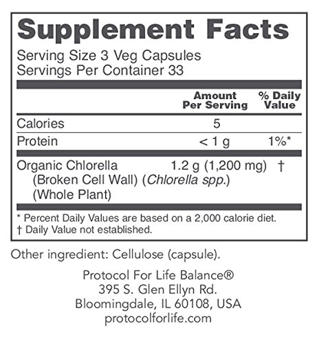 -. Title : Protocol For Life Balance - Chlorella 400 mg - Natural Antioxidants Rich in Chlorophyll & Carotenoids - 100 Vcaps